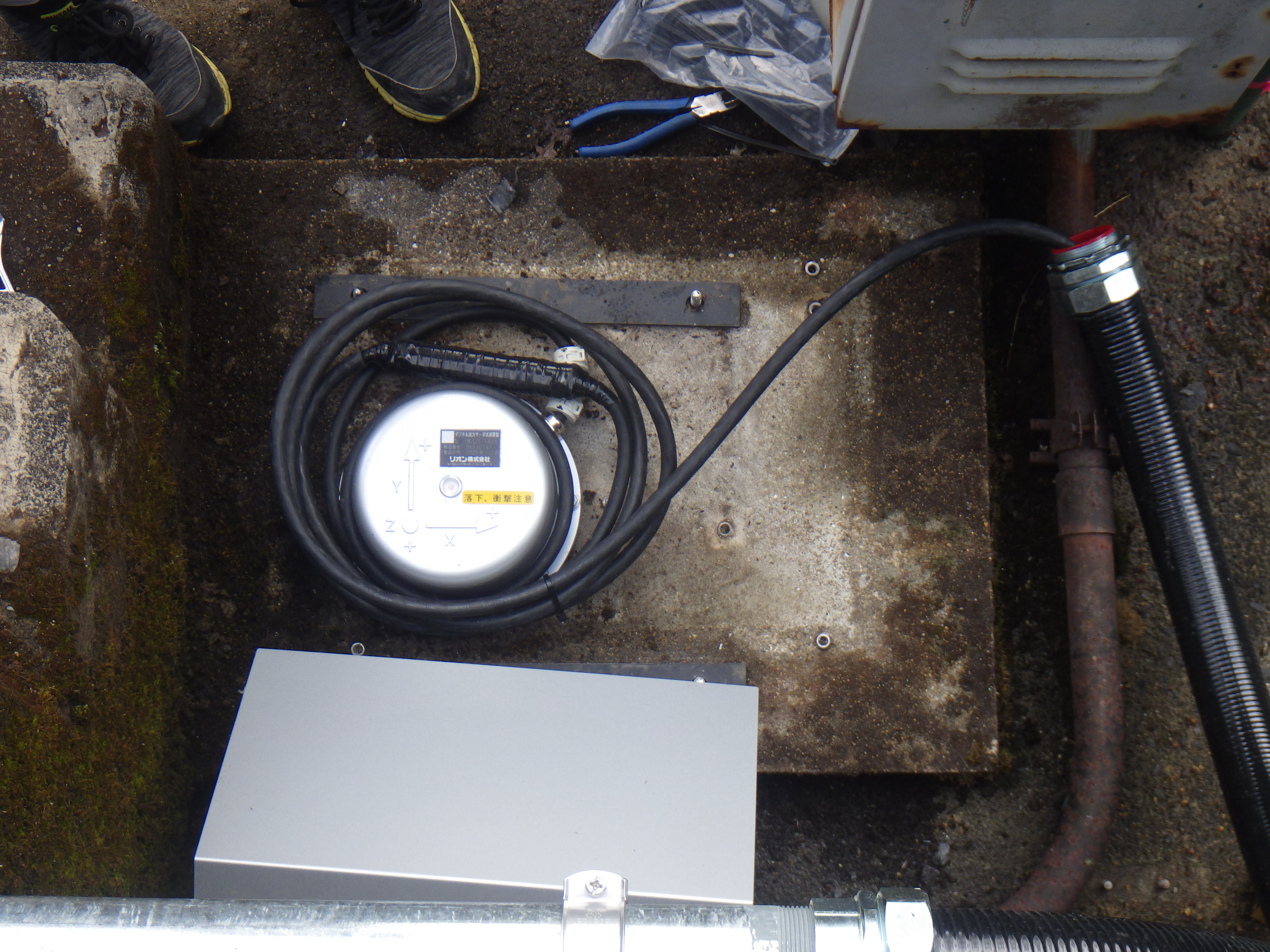 実績紹介 地震観測装置更新工事 宮崎県西都土木事務所発注の工事で長谷ダムの地震観測装置を更新しました。 左:着工前 右:完成 ①基礎地震計更新 ②天端地震計更新 ③地震観測装置更新 ④電線管更新(ダム壁面) ⑤GPSアンテナ更新 ⑤電線管更新(監査廊)